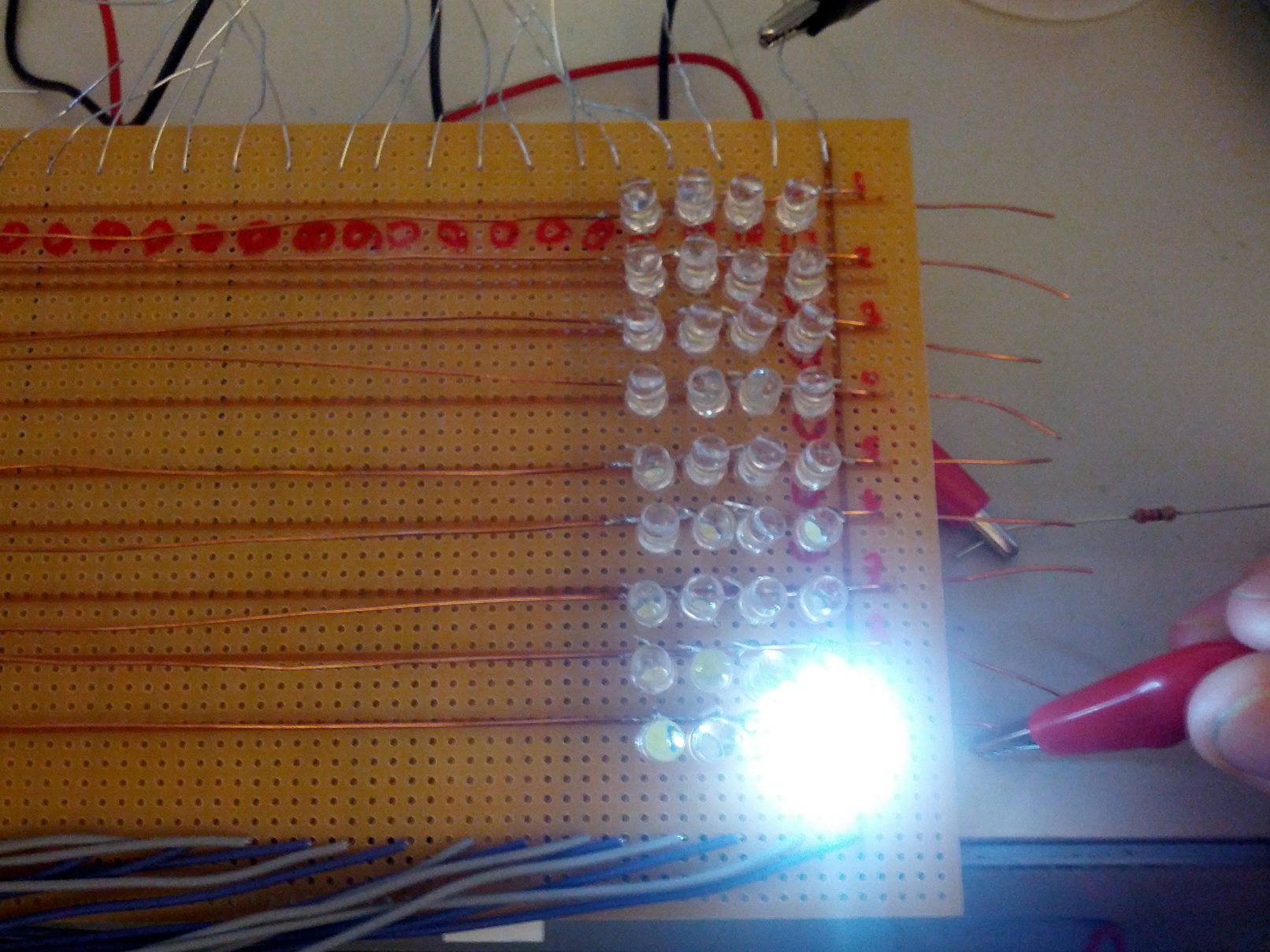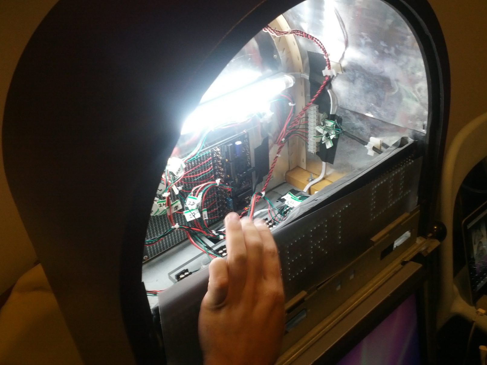 We bought an old slot machine in Long Island. Then gutted it. We installed a computer running custom software inside the machine. We replaced and wired the lever, buttons, coin acceptor, and lights to talk to our software via a microcontroller. We redesigned and skinned the machine, and even made our own LED ticker and pixel alphabet from scratch.